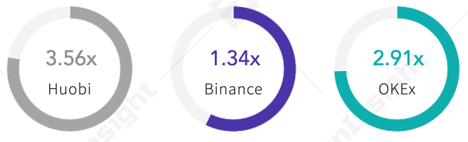 在对比中目前市场上交易所中可用最大杠杆为125,来自Huobi DM和Binance Futures。