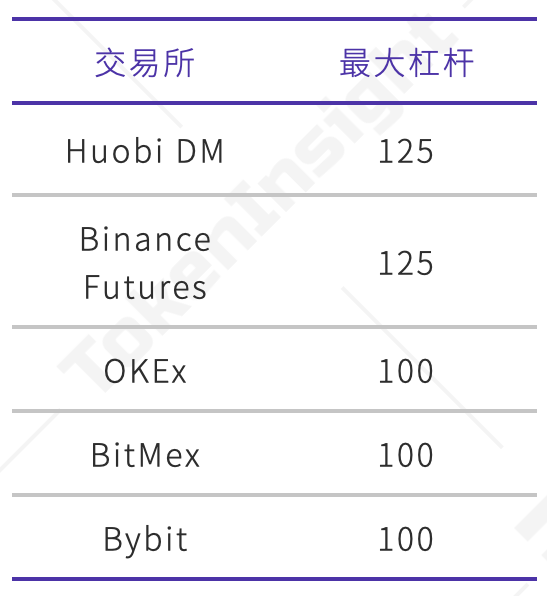 各主要交易所最大杠杆对比,来源:TokenInsight