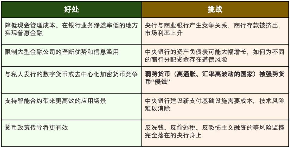 表 1: 央行发行央行数字货币的好处和挑战,资料来源:国际清算银行 (BIS)、IMF、币安区块链研究院