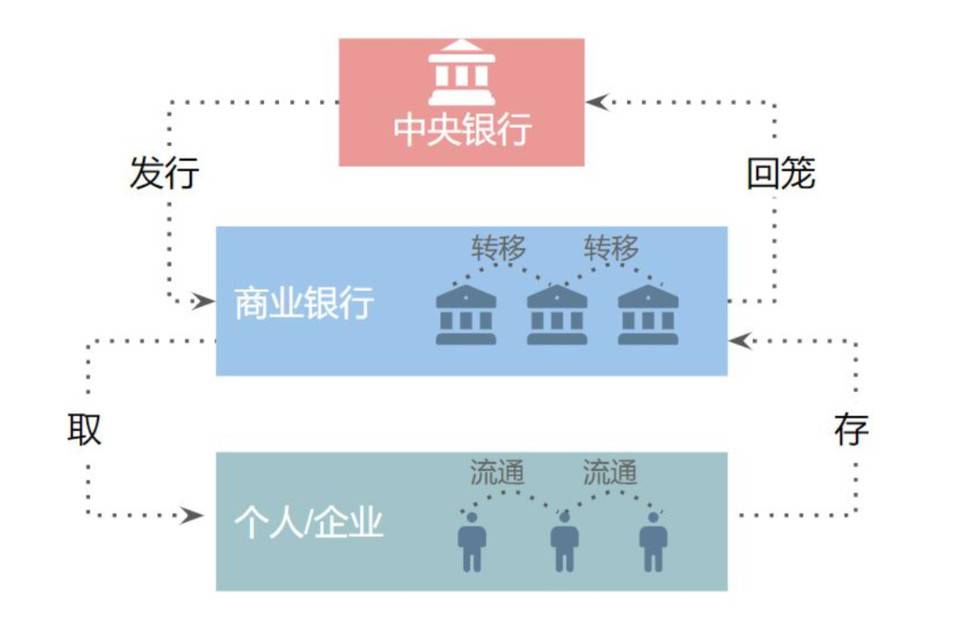 - 与现有货币投放体系和二元账户结构一致,央行数字货币将采用双重投放体系,央行做上 层,金融机构做第二层,要求 100% 存款准备金。其中央行层的投放将是中心化的管理方式,而金融机构对终端用户的投放没有预设技术路线,依靠市场竞争自然选择。