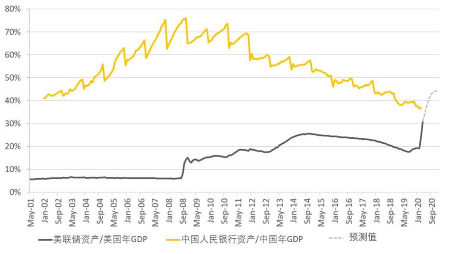 - 利用美联储快速扩表的窗口期。由于 08 金融危机后中国央行资产负债表扩张规模相对温和 ,而海外央行进入指数级加杠杆模式,导致在今年某个时点美联储的「杠杆率」将超越人民 银行。(这还没有剔除因中国经济长期「双顺差」带来的外汇占款被动推升人行资产负债 表) 考虑到美联储快速扩表可能损害美元的长期信任基础,虽然 DCEP 直接计入央行的资 产负债表,但中国央行依旧有大规模发行 DCEP 的空间。