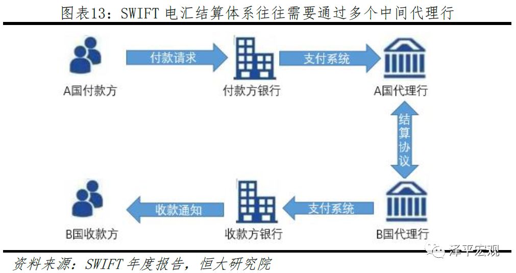 SWIFT主要为金融机构的结算提供金融交易的电文交换业务,提供规则统一的金融行业安全报文服务和接口服务。由于跨境金融机构间系统不相通,直接结算成本高昂,同时业务占比低以及对手方存在不确定性,很难构建直接合作关系。代理行的存在、协议的沟通以及交易信息的反复确认使得结算周期平均需要3-5天,其中通过SWIFT进行交易确认往往需要1-2天。