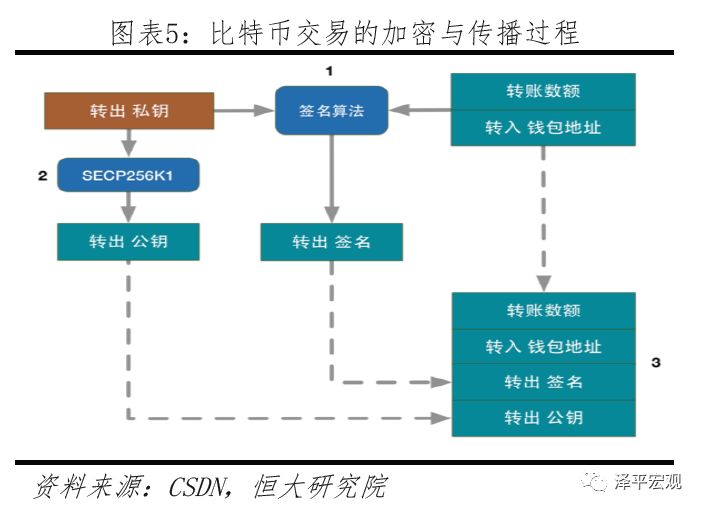 在比特币区块链中,私钥代表了对比特币的控制权。交易发起方用私钥对交易(包括转账金额和转账地址)签名并将签名后的交易和公钥广播,各节点接收到交易后可以用公钥验证交易是否合法。在这个过程中交易发起方无须暴露自己的私钥,从而实现保密目的。