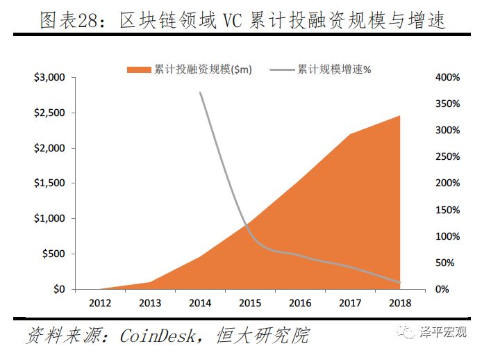 从整体规模来看,区块链项目的VC融资规模增速逐渐变缓。截至2018年3月,VC累计融资约24.63亿美金,同比增速降低28.5%。经历过2013年与2014年的爆发,VC项目开始减缓。