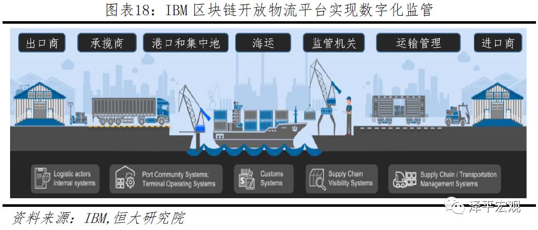 国际方面,以IBM为例,早在2014年开始布局研发Open Blockchain框架,也是Hyperledger早期代码源。目前,IBM在食品安全全流程追溯和供应链物流管理都有应用平台落地。