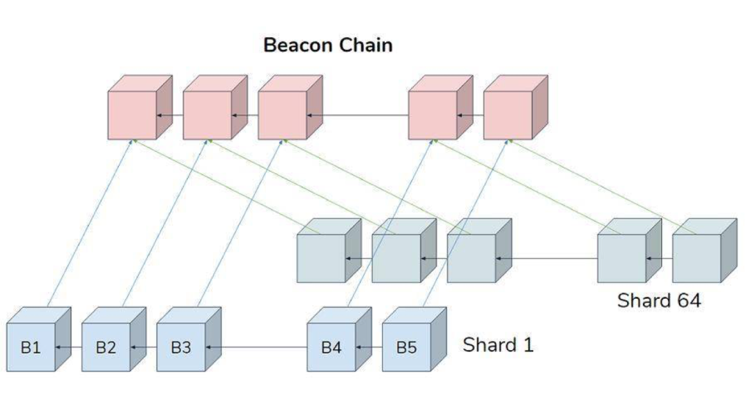 以太坊为了实现扩容,计划将在今年第三季度上线 ETH 2.0 的 Phase 0 阶段:信标链。未来信标链将会成为 ETH2.0 整个网络架构中的核心。 Phase 0 阶段实现之后,Eth2.0 路线图中的下一个里程碑就是 Phase 1 阶段,该阶段将实现分片功能,并创建 64 条分片链。