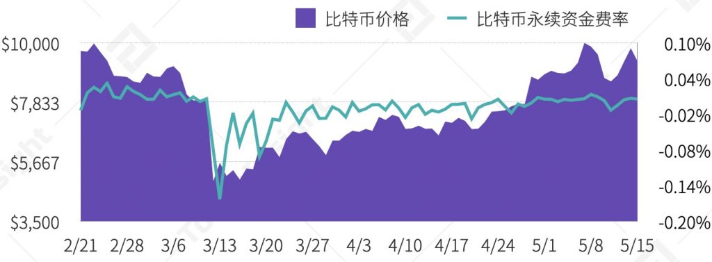 TokenInsight认为,越临近减半时刻,投资者情绪越不稳定,价格浮动也会更加剧烈。投资者对减半寄予期望较大,市场回暖并且稳定后,投资者信心再度加强,进一步推动了行情。3.2.2 比特币永续资金费率