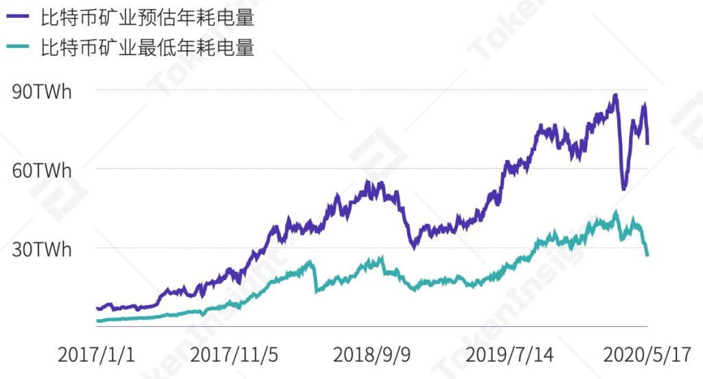 此外,由于减半的影响,矿工对市场后市预期会有所下降。因此会出现矿工逐步选择关机,导致比特币矿业耗电量缓慢下降。