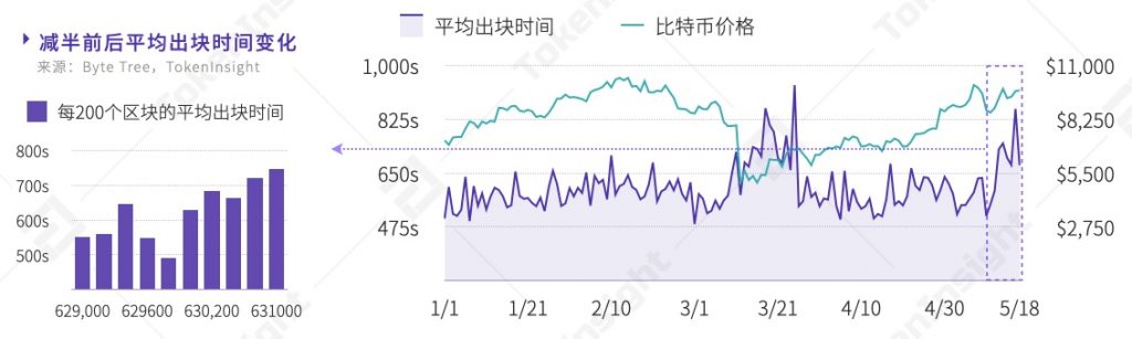 “减半后平均出块时间下降约20%,全网算力或继续下降