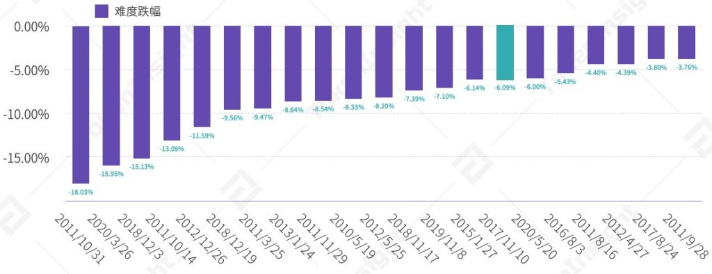 “减半后挖矿难度下降6%,为历史上第16大跌幅