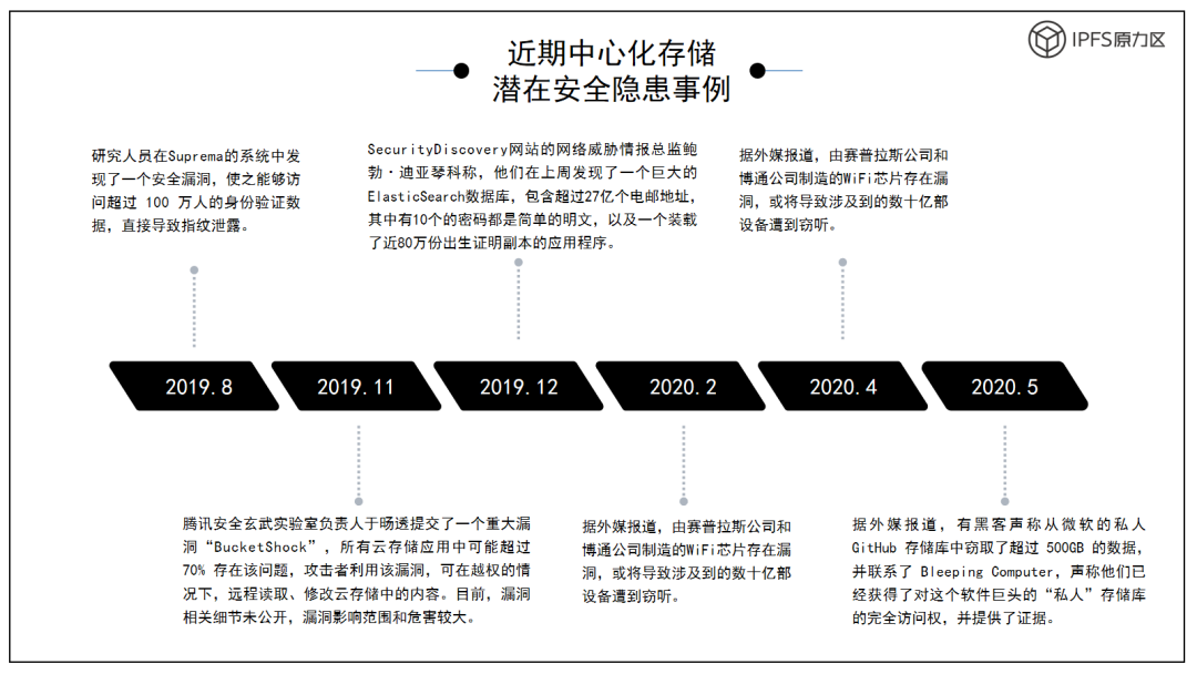 (图三)近期中心化存储潜在安全隐患事例(不完全统计),来源:IPFS原力区,2020-06