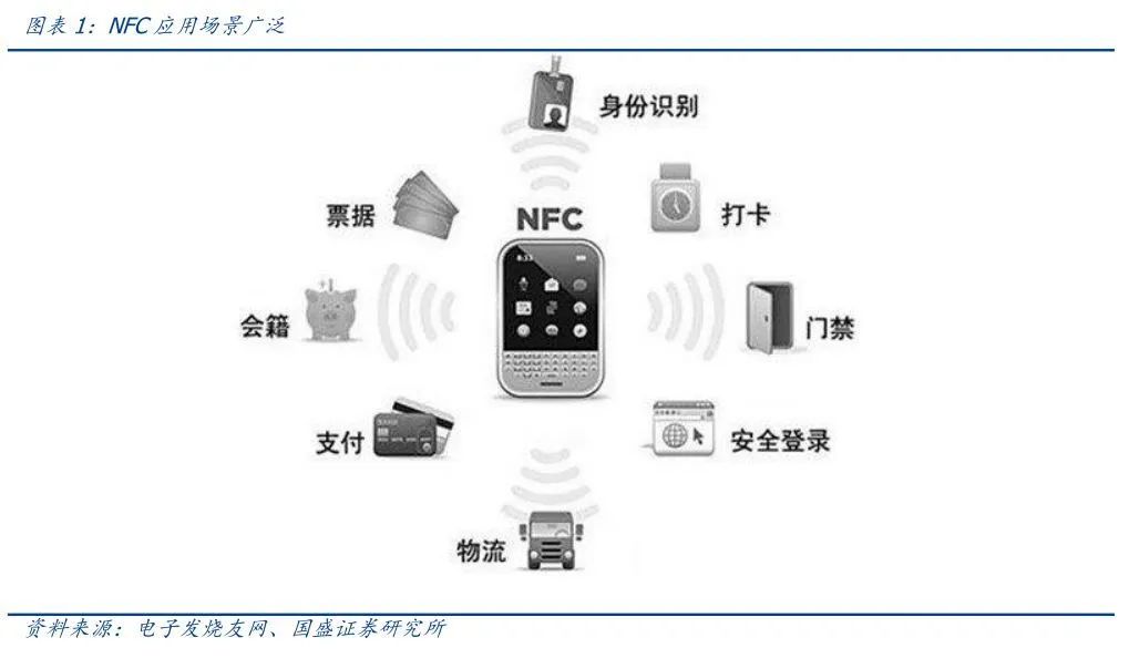 NFC 提供了一种简单、非触控式的解决方案,可以让消费更简单直观的交换信息、访问与服务。NFC(Near FieldCommunication,NFC),中文全称为近场通信技术。NFC 是在非接触式射频识别( RFID) 技术的基础上,结合无线互联技术研发而成,为日常生活中各种电子产品提供了一种十分安全快捷的通信方式,即两个设备靠近就可以完成数据通信。NFCIP-1 标准规定NFC 的通信距离为10 厘米以内,运行频率为13.56MHz,传输速度有106 Kbit /s、212 Kbit /s 或者424Kbit /s 三种。NFC功能应用现在已经普遍应用在金融支付、在交通、电子产品、零售商超、娱乐、医疗、身份识别等等众多领域。