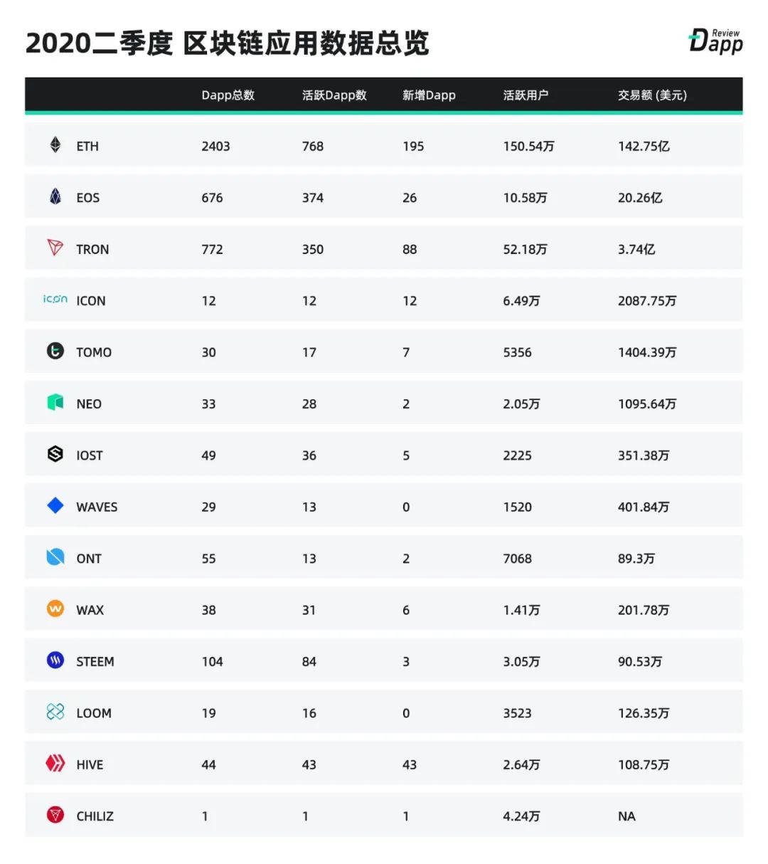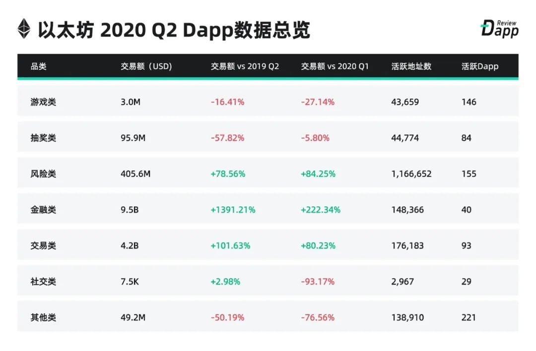 以太坊2020年Q2的dapp总交易额为142.7亿美金,较去年同期(32.8亿美金)增长334%。