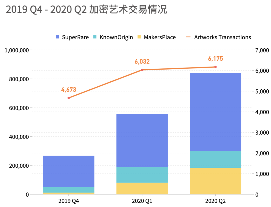 加密艺术品市场从2019年底进入活跃状态,本报告对3家加密艺术品平台——SuperRare、KnownOrigin和MakersPlace进行了统计。