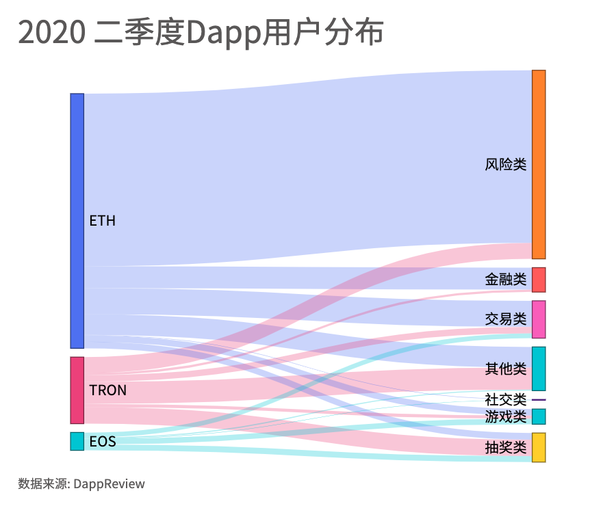 风险类Dapp Q2总交易额高达4.05亿美元,同比增长78.56%;总用户数超过116万,同比增长1331.65%,占总用户数的73.86%。