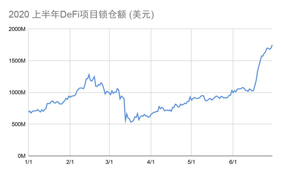 2020上半年,DeFi锁仓总额在3月12日暴跌之后稳步回升,并在上半年结束时超过17亿美元。