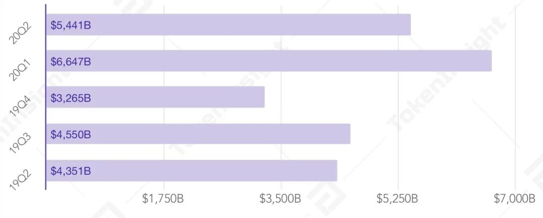 19Q2-20Q2各季度全市场现货成交量,来源:TokenInsight