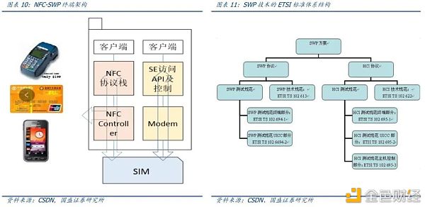 NFC SIM卡方案是主流的选择。支持NFC的手机可以采用的解决方案很多,其中以SIM卡为中心的NFC SWP解决方案广为SIM卡商和移动运营商青睐。NFC SWP相比较全手机方案——即所有硬件数据读写、安全保证均在手机实现,手机与NFC芯片接口由各厂家自行定义,较难统一运营。NFC SWP方案接口基本标准化,NFC产业链发展最为完善,从芯片制造商到SIM卡商、终端制造商、到运营商,均匀大量厂家、运营商支持。SWP方案有三种实现方式,分别是NFC-SIM方案、NFC-SD方案以及全终端方案。目前银联首推SWP-SD方案,国内三大运营商则主推SWP-SIM方案。NFC-SIM卡是能够适应大部分没有NFC功能的手机的卡,但需要占用手机SIM卡卡槽,需要手机开机状态下向其供电以加大发射功率便于识别。如果手机本身有NFC功能,则不需要电信运营商的NFC-SIM卡,只需要将公交卡或银行卡写入NFC芯片,不用占用手机SIM卡卡槽,关机也能完成支付。NFC手机可以当作NFC读卡器使用,能读其他NFC标签。为了保证数据的安全性,在更换手机后不至于重新设置密钥信息,可以在SIM/SD卡中保存移动支付的密钥信息。此时,NFC芯片提供射频接口,负责转发射频数据给SIM卡。对SIM卡而言,不需要像双界面SIM卡那样增加非接触接口,而使用SWP接口实现与NFC芯片的连接。在标签模式下,NFC芯片类似于桥接器,在阅读器和SIM卡之间转发数据。