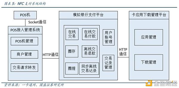 NFC移动支付有望支持DCEP实现离线支付。在中国人民银行数字货币研究所发布的专利“使用数字货币芯片卡进行离线支付的交易及方法”中可以看到,DCEP实现离线支付可以依靠数字货币芯片卡。这一模式实现了“用户—POS机”链条的离线,而暂时无法实现“POS机—银行”链条的离线。NFC移动支付作为一种便捷、成熟且安全的方案,有望在DCEP离线支付中发挥作用。