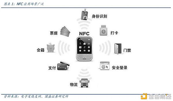 NFC 提供了一种简单、非触控式的解决方案,可以让消费更简单直观的交换信息、访问与服务。NFC(Near FieldCommunication,NFC),中文全称为近场通信技术。NFC 是在非接触式射频识别( RFID) 技术的基础上,结合无线互联技术研发而成,为日常生活中各种电子产品提供了一种十分安全快捷的通信方式,即两个设备靠近就可以完成数据通信。NFCIP-1 标准规定NFC 的通信距离为10 厘米以内,运行频率为13.56MHz,传输速度有106 Kbit /s、212 Kbit /s 或者424Kbit /s 三种。NFC功能应用现在已经普遍应用在金融支付、在交通、电子产品、零售商超、娱乐、医疗、身份识别等等众多领域。