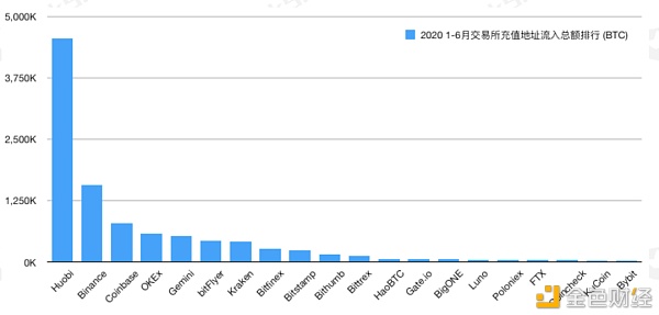 图十四:2020上半年交易所充币地址流入数额排行榜