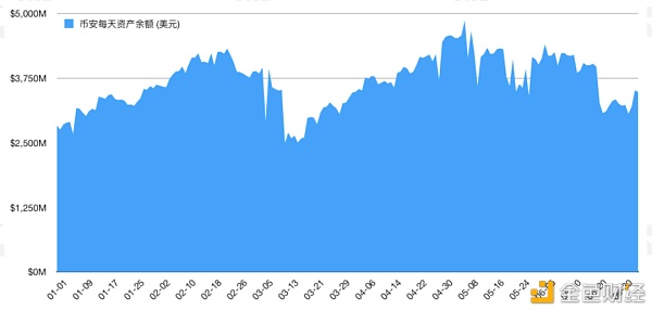 我们进一步观察发现,交易所之间彼此存在的资金流动比较频繁。接下来,我们将以币安交易所为例,并选取过去一个月的资金流动情况为参考,可以进一步管窥交易所之间的资金转移情况。