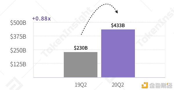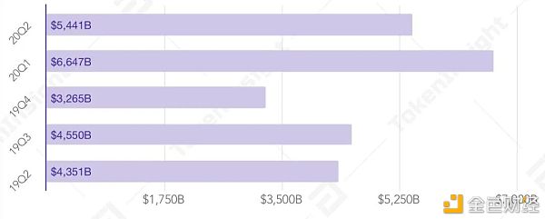 19Q2-20Q2各季度全市场现货成交量,来源:TokenInsight