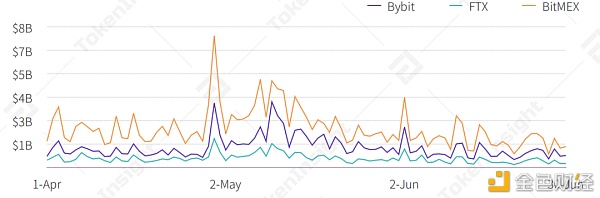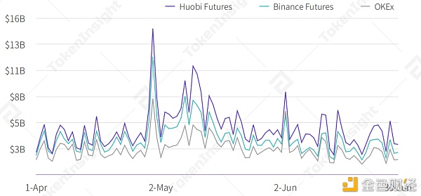 20年Q2 大型综合交易所衍生品逐日成交量,来源:TokenInsight