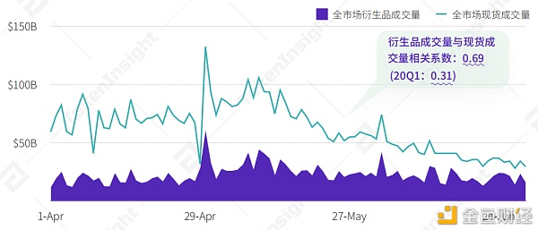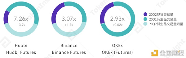 20年Q2 衍生品与现货成交量对比,来源:TokenInsight