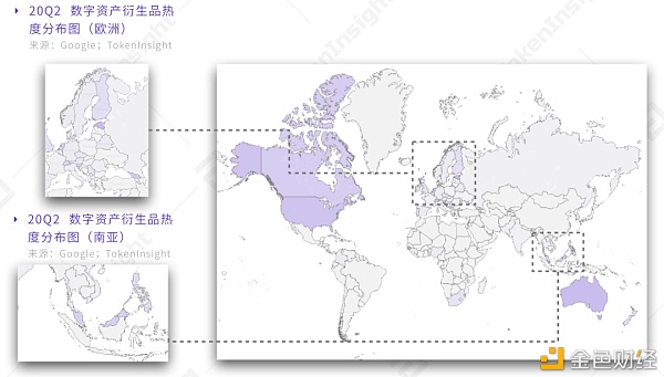 20年Q2 数字资产衍生品热度分布图(全球),来源:Google;TokenInsight