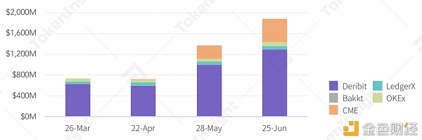 20年Q2 主要交割日各交易所BTC期权未平仓量,来源:Skew;TokenInsight
