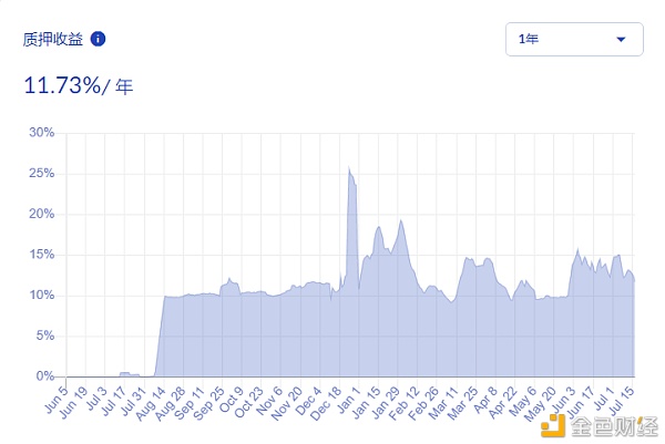 根据计算,从年初到现在的199天里,抵押Luna的平均年化收益为12.8%。目前抵押的Luna数为3.05亿,抵押率为的30.59%。抵押收益包括了铸币税、预言奖励和Gas费。