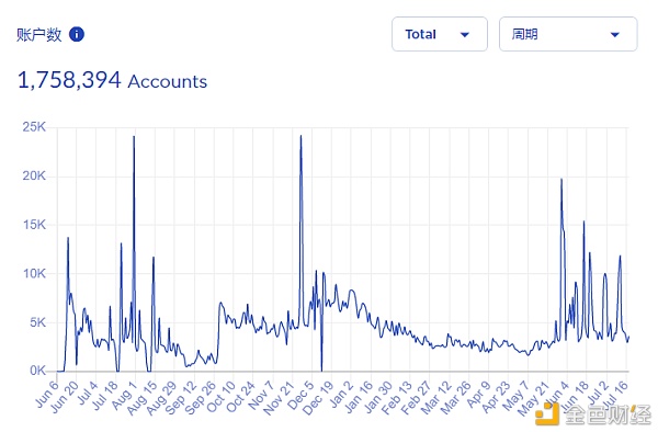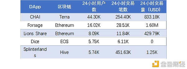 根据Dapp.com的排名,Terra的支付网关(钱包)CHAI过去24小时有4.43万活跃用户(7月19日晚),是活跃用户最多的DApps。