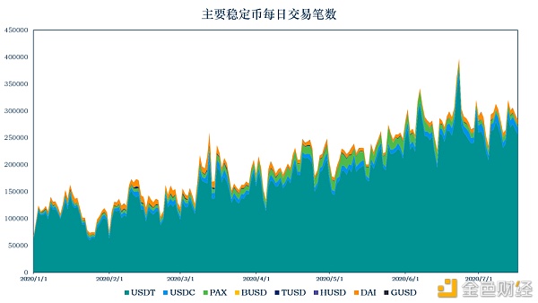 与前一周相比,主要稳定币每日的交易笔数平均上升2.63%。