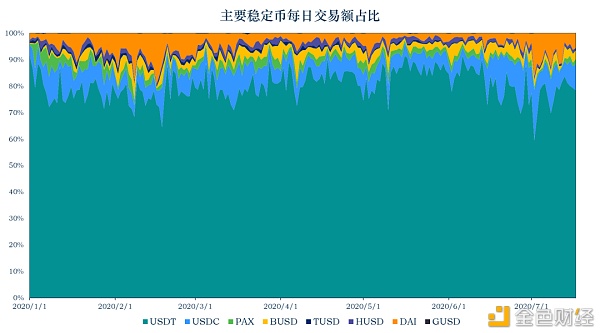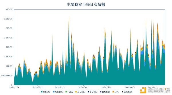 上周,主要稳定币平均每日的交易额平均下降3.2%。