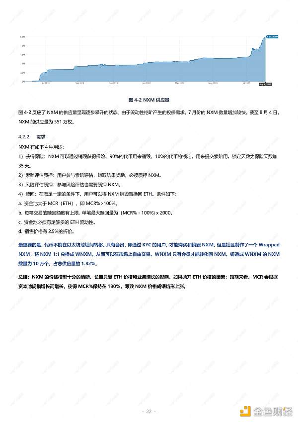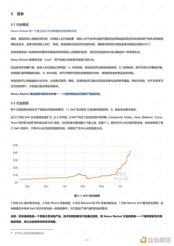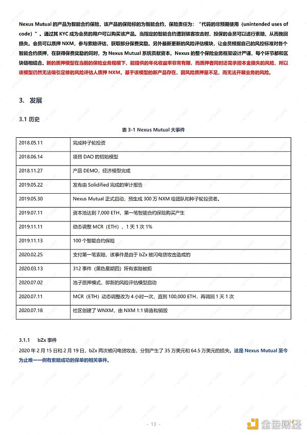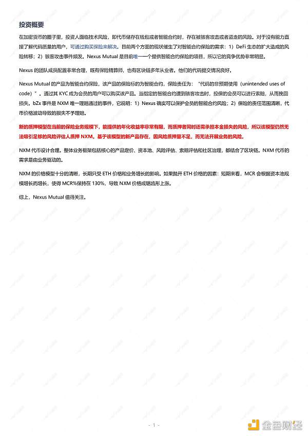 深入解读DeFi保险:Nexus Mutual 头等仓 2020年08月19日 09:15 微信扫一扫分享到朋友或朋友圈 Nexus Mutual是一种互助型(people-powered)保险,成员共同加入一个DAO,共同承担风险。它采用了非常古老的相互保险的概念,并使用代币激励以非托管的方式运行。2020年初的bZx遭到黑客入侵事件,Nexus Mutual完成了第一笔索赔要求。以下是first.vip对Nexus Mutual的研究报告全文:
