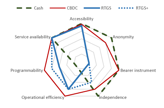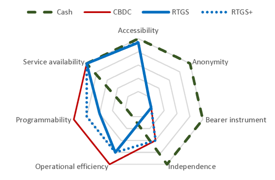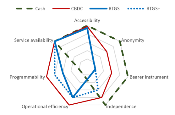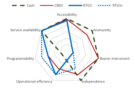 Figure 2:现金等价的CBDC| 雷达得分 | 雷达评分的依据 | |