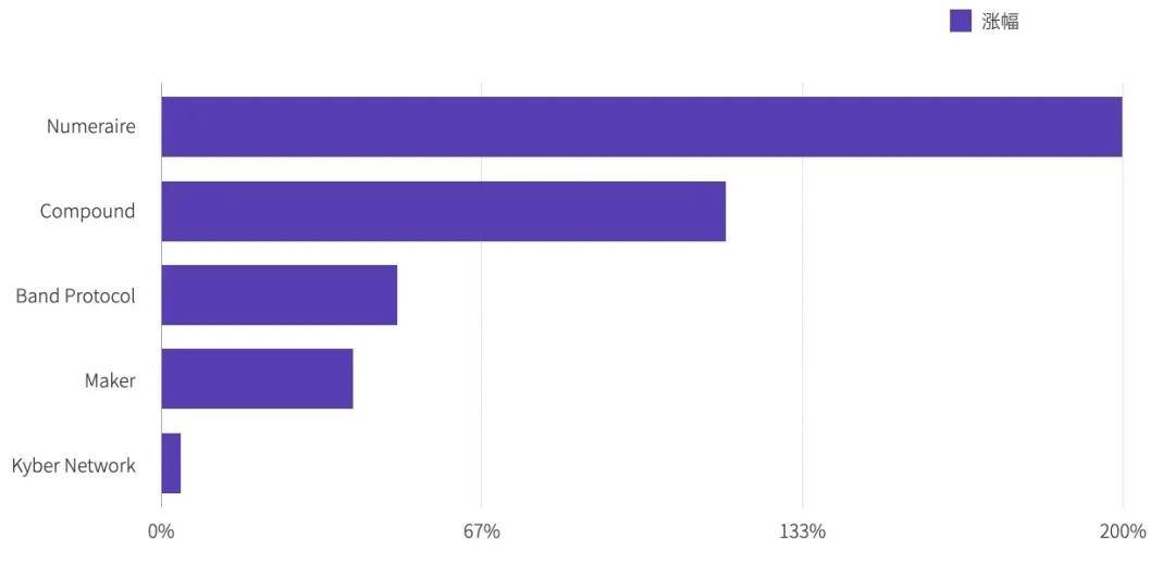 另一方面,中心化交易所作为发展更为成熟的行业领域,头部平台对DeFi主流代币的集体上线无疑表示着行业对DeFi这一曾经只流行于小众社区的领域的认可和重视。其中,Coinbase上线DeFi代币对于代币价格的影响尤为显著。以Coinbase今年上线的5款非稳定币DeFi项目为例,在Coinbase官方宣布上线消息的当日,所上线的DeFi项目通证平均涨幅为82%。