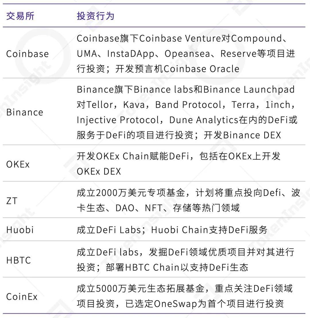 各交易所DeFi领域投资行为,来源:TokenInsight