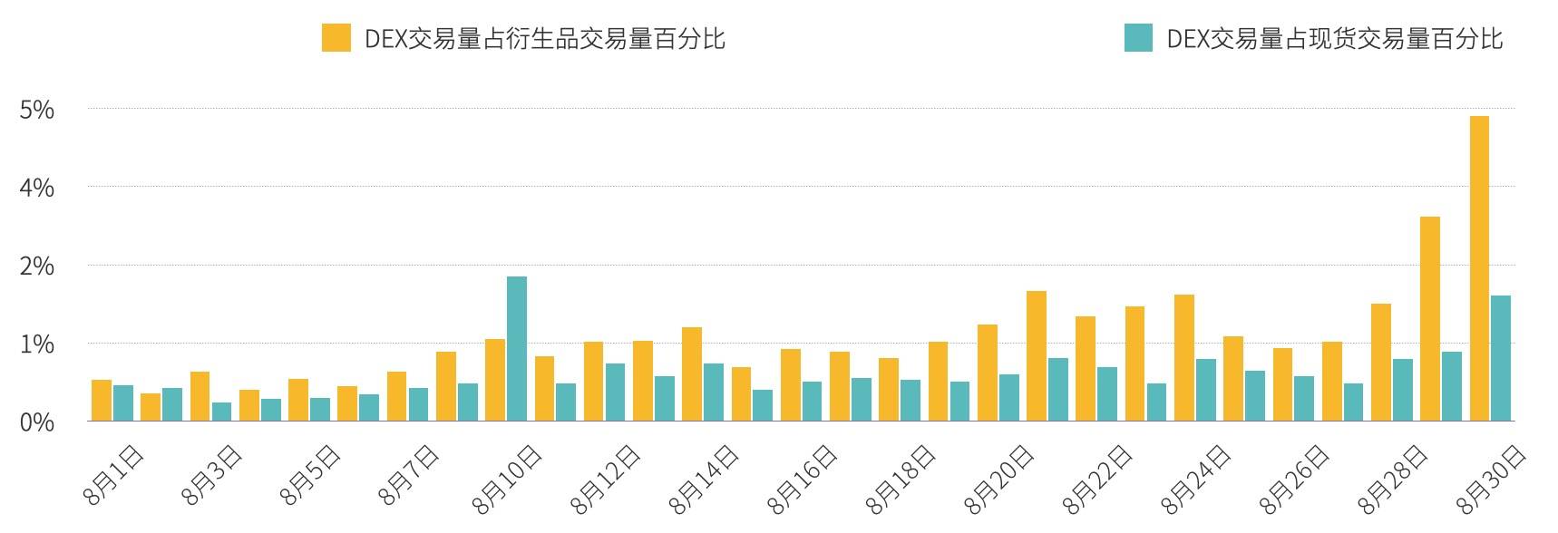 Dex八月交易量占现货与衍生品交易量百分比,来源:DeBank,TokenInsight