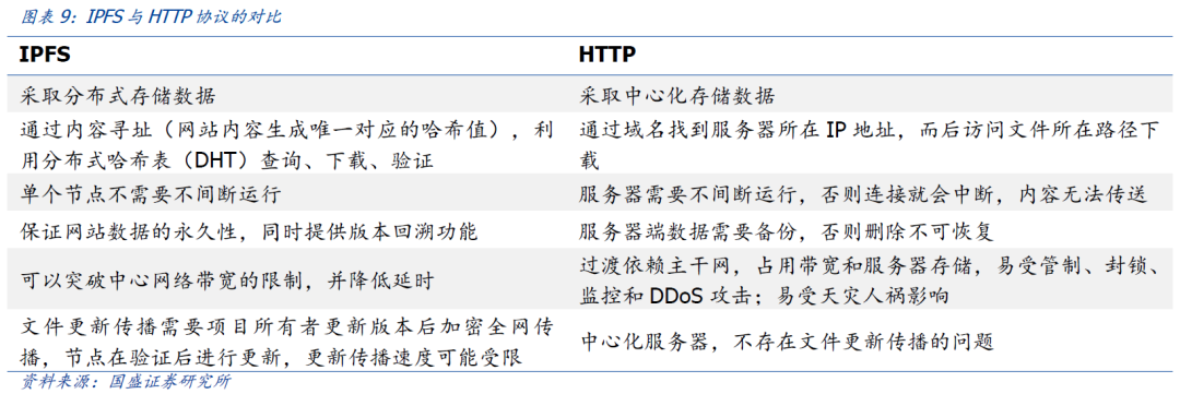 类似IPFS这种分布式存储协议逐渐兴起,作为HTTP的补充,打造面向全球、点对点的分布式版本文件系统,能将所有具有相同文件系统的计算设备连接在一起。就IPFS而言,用户寻找的是存储在某地方的内容(这些内容分散在不同的服务器节点),而不是某地址,就只需确认验证内容的哈希,这样就能过获得速度更快、安全、健壮、持久的网页。