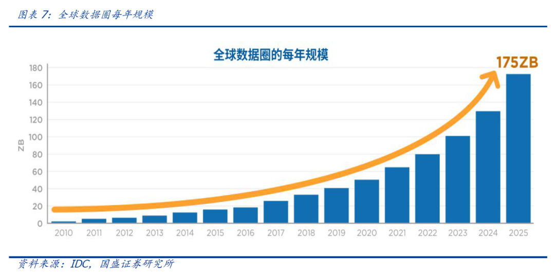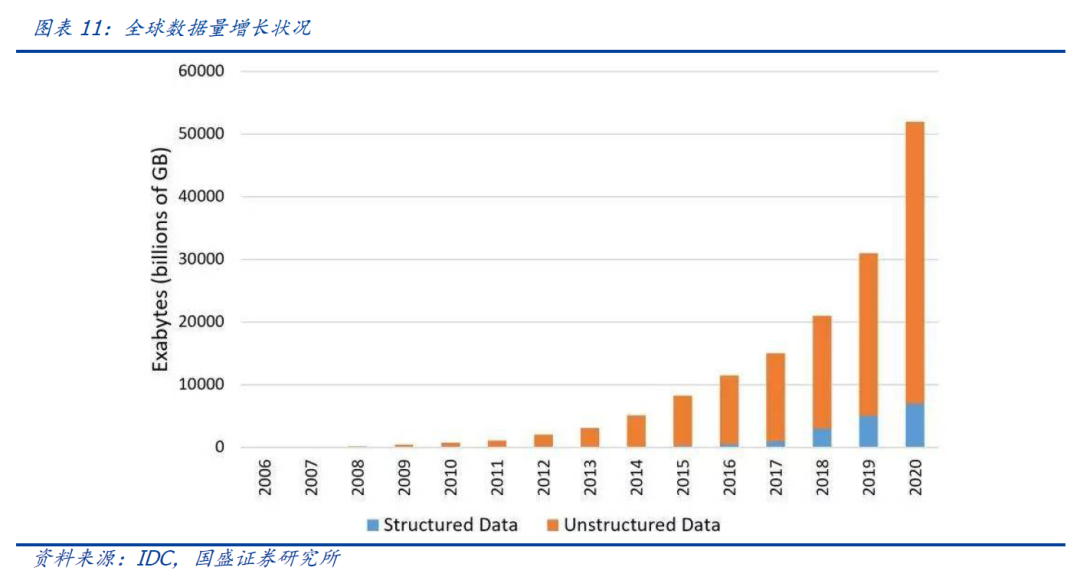 随着互联网与通信、人工智能、物联网、云计算/边缘计算等技术的发展,万事万物都可以被记录并用数据表达,数据从单一内部小数据向多元动态大数据转变。据IDC预测,全球数据圈的规模将由2018年的33ZB增长至2025年的175ZB,且文本、图片、视频等非结构化数据将拥有更高的增长率,在整体数据圈的占比也将持续增加。因此,需要更先进的互联网基础架构来对数据进行采集、存储和利用。