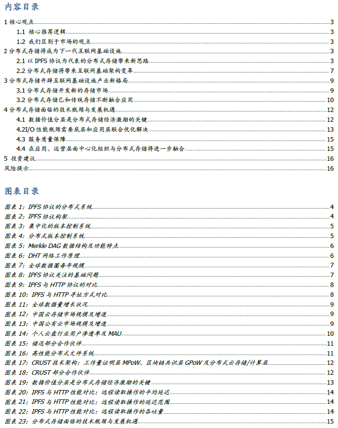 风险提示:分布式存储商业模式落地不及预期;分布式存储技术发展不达预期。