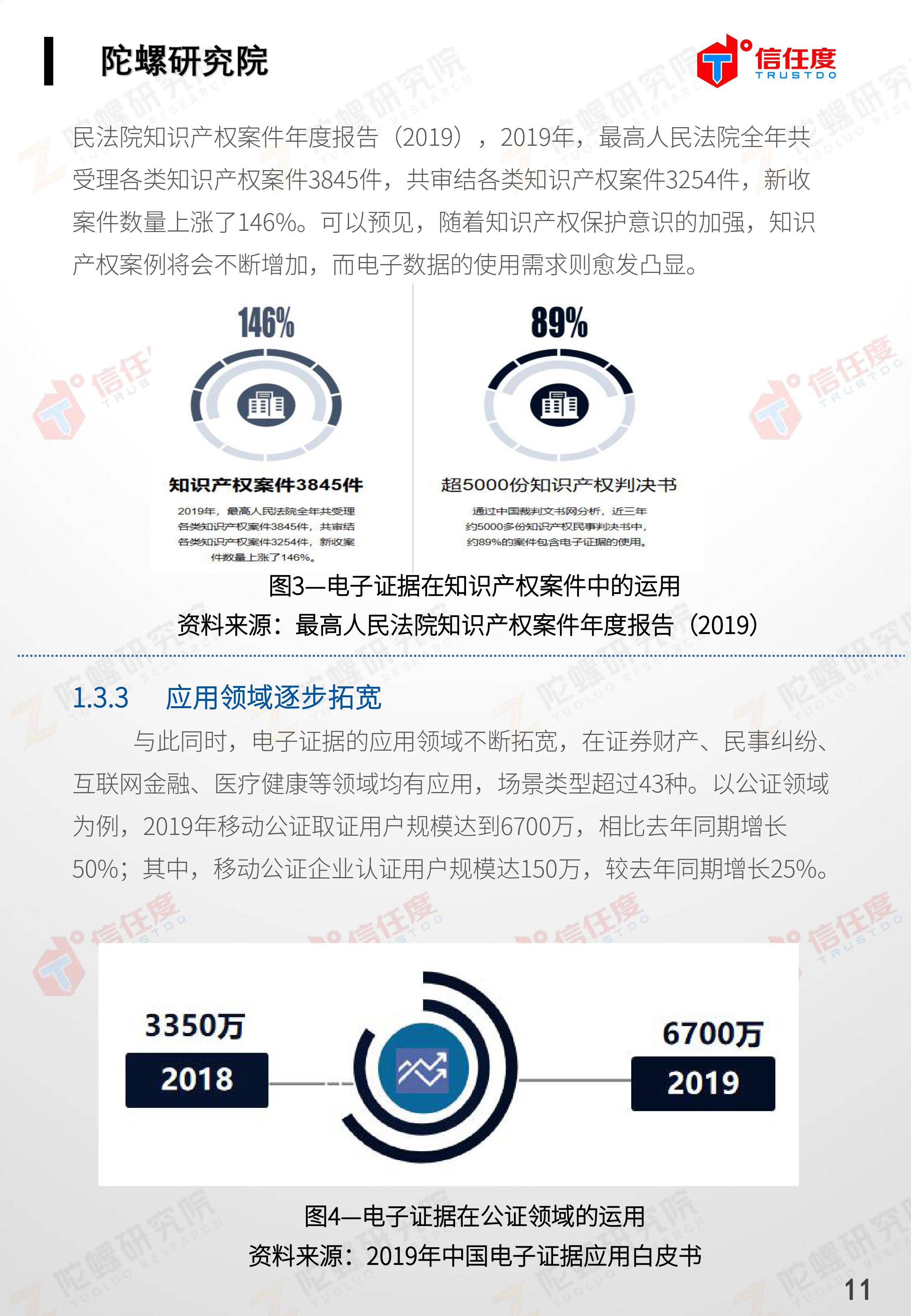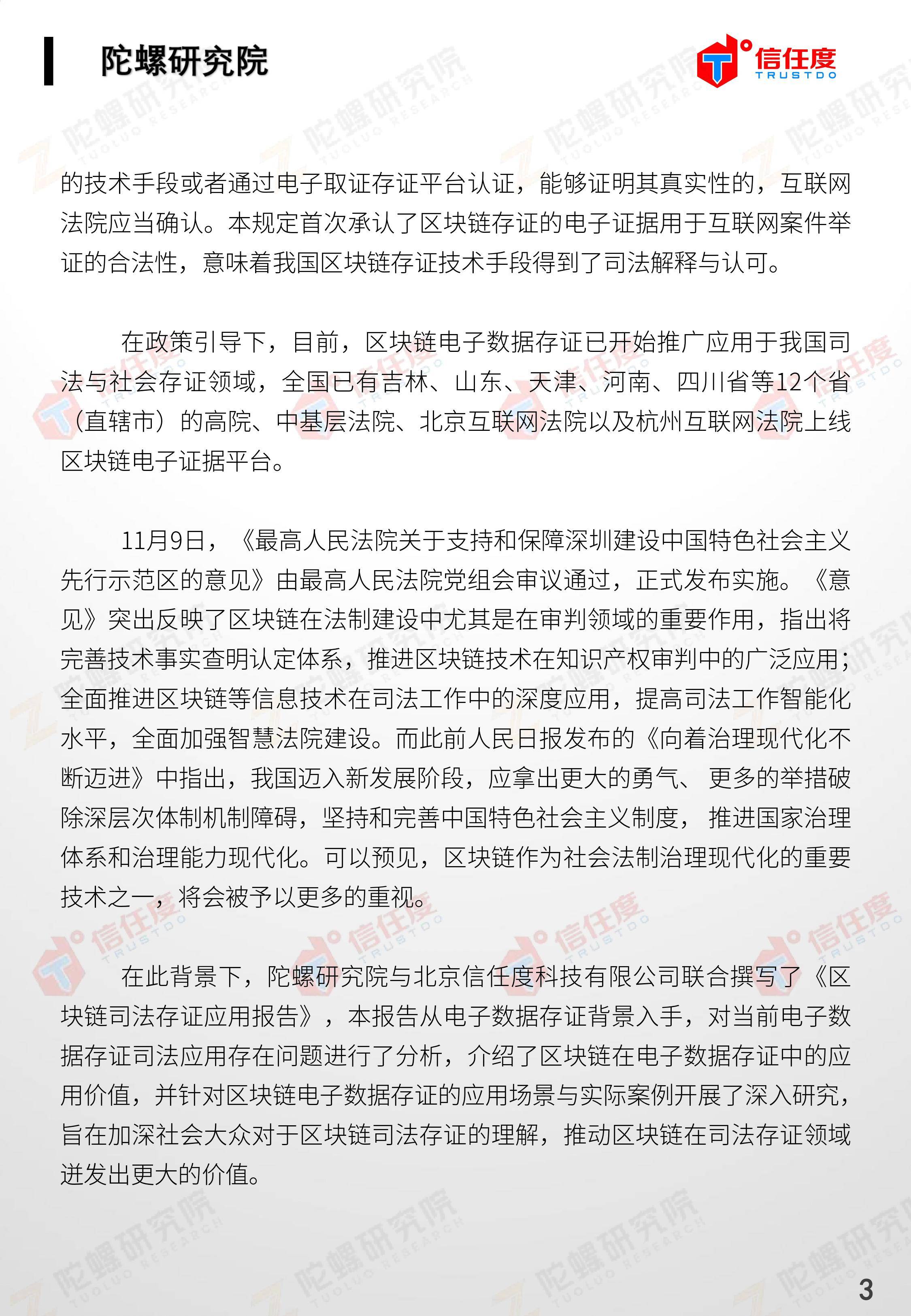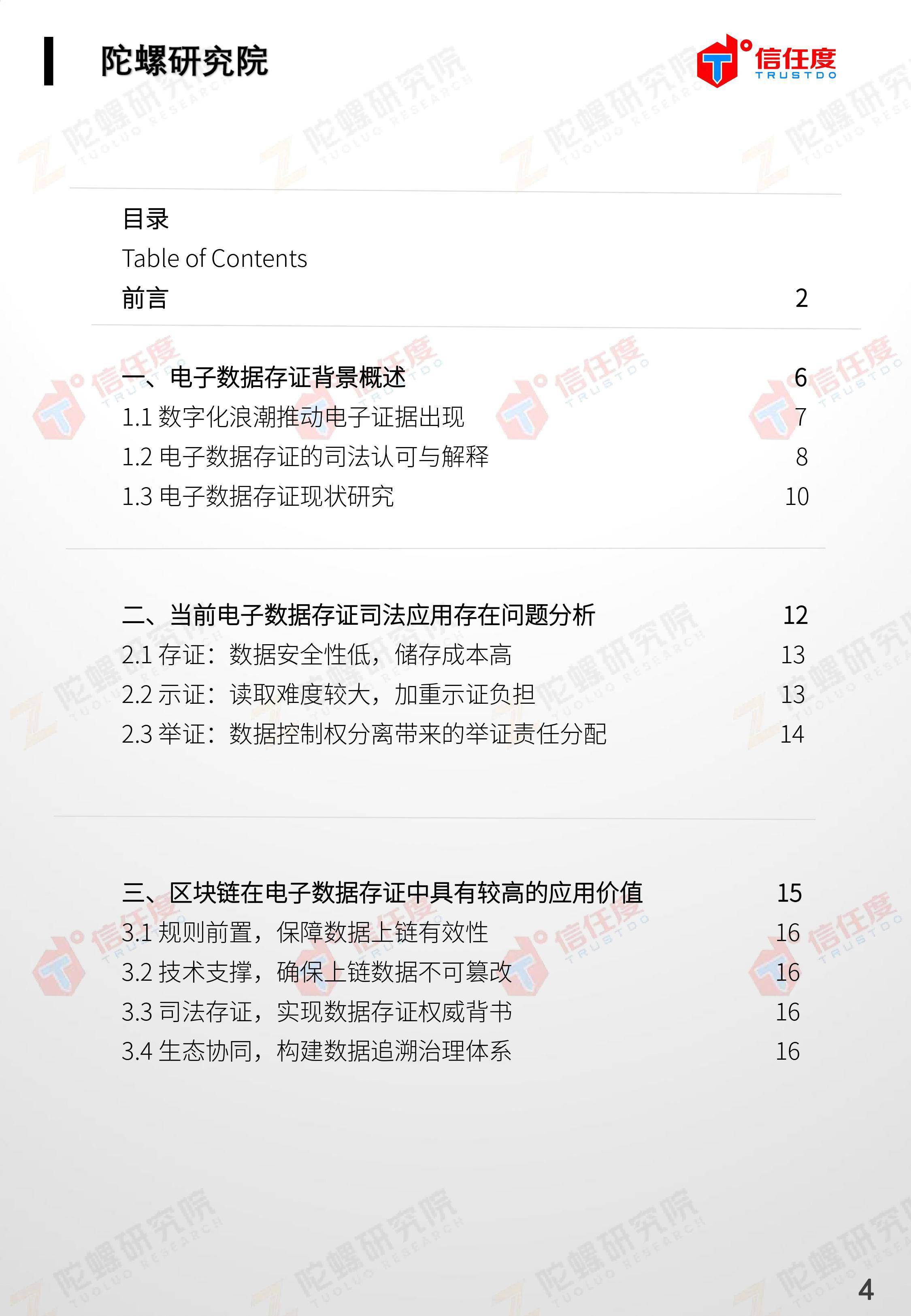 在此背景下,由陀螺研究院与北京信任度科技有限公司联合撰写,清华x-lab数权经济实验室、深圳市信息服务业区块链协会、碳链价值、网易区块链、商业科技观察、算力智库、数秦科技、火星财经、达瓴智库联合发布的《区块链司法存证应用报告》面市,本报告从电子数据存证背景入手,对当前电子数据存证司法应用存在问题进行了分析,介绍了区块链在电子数据存证中的应用价值,并针对区块链存证的应用场景与实际案例开展了深入研究,旨在加深社会大众对于区块链司法存证的理解,推动区块链在司法存证领域迸发出更大的价值。