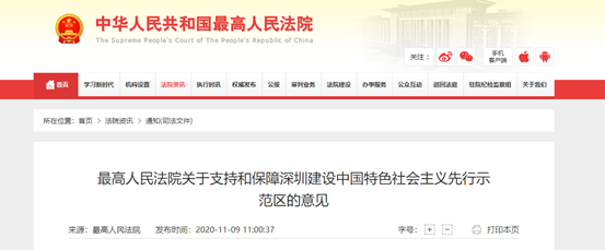 11月9日,《最高人民法院关于支持和保障深圳建设中国特色社会主义先行示范区的意见》由最高人民法院党组会审议通过,正式发布实施。《意见》突出反映了区块链在法制建设中尤其是在审判领域的重要作用,指出将完善技术事实查明认定体系,推进区块链技术在知识产权审判中的广泛应用;全面推进区块链等信息技术在司法工作中的深度应用,提高司法工作智能化水平,全面加强智慧法院建设。而此前人民日报发布的《向着治理现代化不断迈进》中指出,我国迈入新发展阶段,应拿出更大的勇气、更多的举措破除深层次体制机制障碍,坚持和完善中国特色社会主义制度,推进国家治理体系和治理能力现代化。