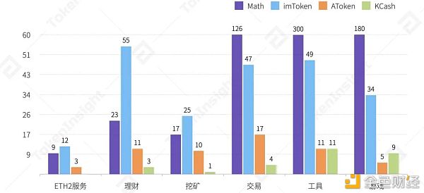 DApp聚合功能钱包DApp功能分类统计,来源:TokenInsight
