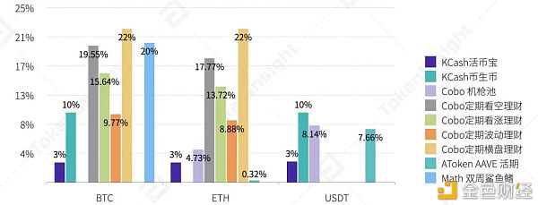 数字钱包对BTC、ETH、USDT理财产品收益率信息,来源:TokenInsight