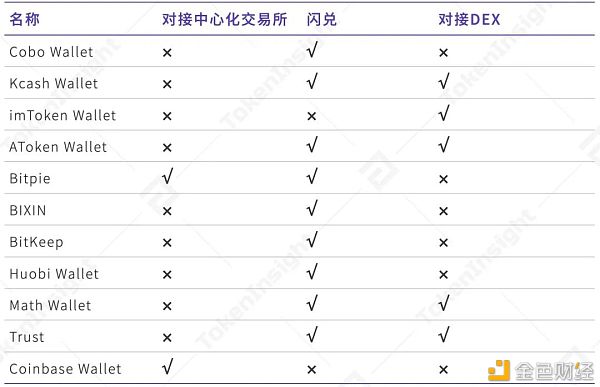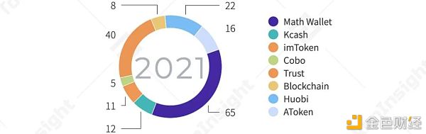 各钱包2021年对接公链分布统计,来源:TokenInsight