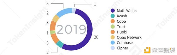 各钱包2019年对接公链分布统计,来源:TokenInsight
