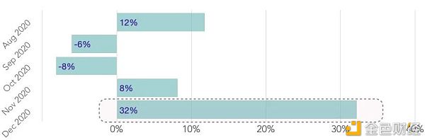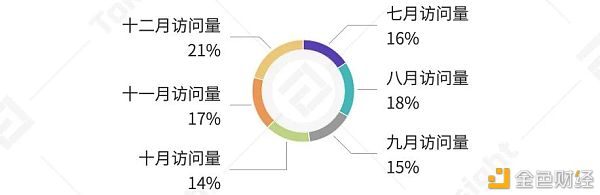 其中9月、10月出现了部分负增长,但随着市场热度的稳步回升,钱包应用的访问量也在12月实现32%的增长。